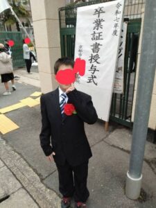 後ろから、廊下に出た女性教諭が息子に問いかける声と、普通に応答する息子の声が聞こえてきました。